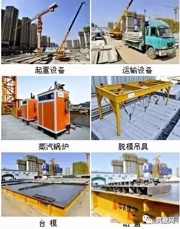 2)生产设备的确定:生产设备确定主要包括两个方面的内容:第/一,根据构件类型数量统计及主体进度及构件生产周期,确定需要的台模或其他可移动模板的类型、数量;第二,依据项目施工工艺及现场实际条件,选择使用的模板形式、节点连接方法以及其他合适的辅助性生产设备。