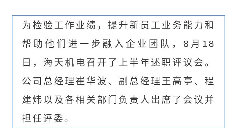 海天机电召开上半年述职评议会