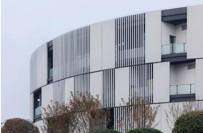 由于混凝土自身的力学性能,单个预制混凝土构件的尺寸远大于常规的单块幕墙尺寸。在构成立面时,采用超大尺度的预制构件所需要的板块数量远小于幕墙,因此立面分隔缝相应更少,立面平整度更高,从而有助于形成更简洁的立面分隔方式,获得更好的建筑表现力。