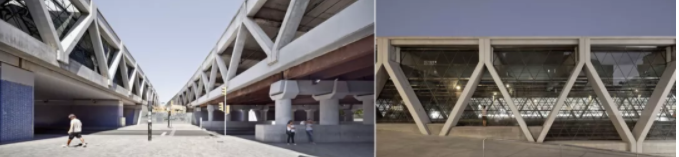 功能性构件的再设计:国外优秀装配式建筑作品——由Sergi Godia设计的巴塞罗那某铁路段廊道项目,通过V字型预制混凝土柱形成的集成支撑及装饰功能的结构构件。