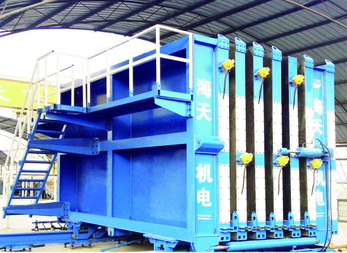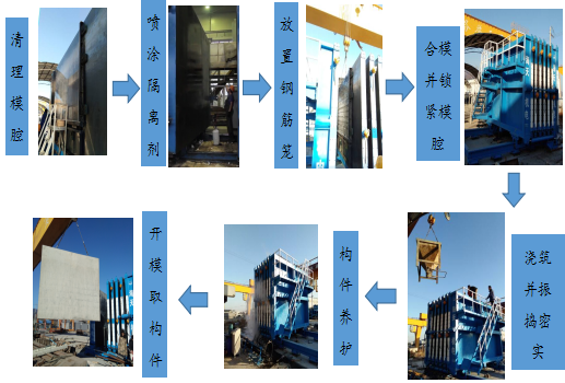 在本课题研究过程中,海天机电充分进行了市场调研,根据国内PC构件生产现状,结合国外先进的立模成型生产技术,研发出了具有国际先进水平的预制混凝土构件成组立模生产系统,主要创新点有: