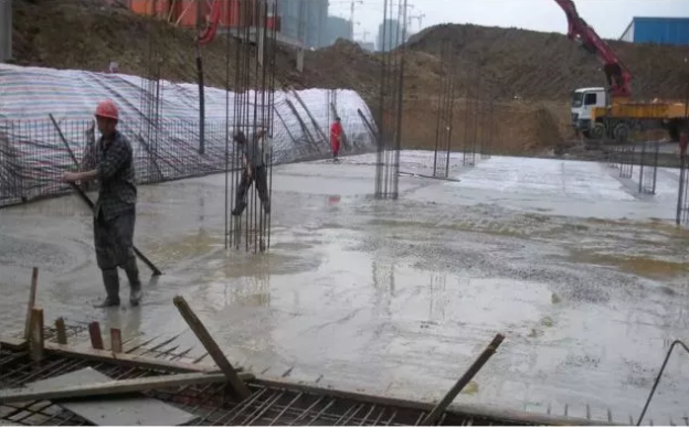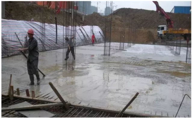混凝土浇筑应从墙板开始,分层浇筑,每层浇筑高度不大于80cm,间隔时间一般不小于1小时。