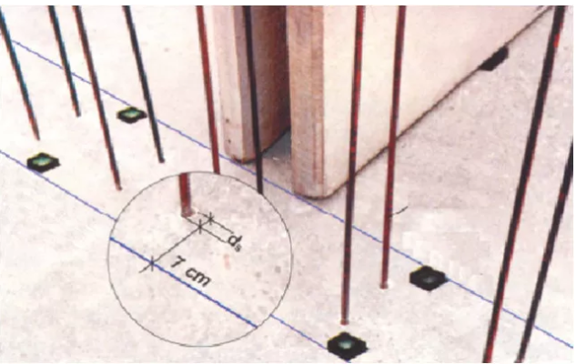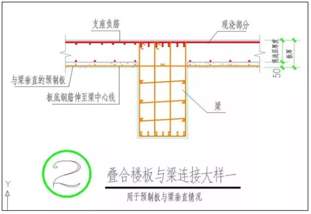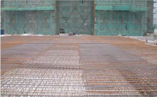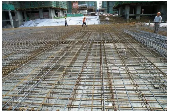 楼板上层钢筋应置于格构梁上弦钢筋上,与格构梁绑扎固定,以防止偏移和混凝土浇筑时上浮。