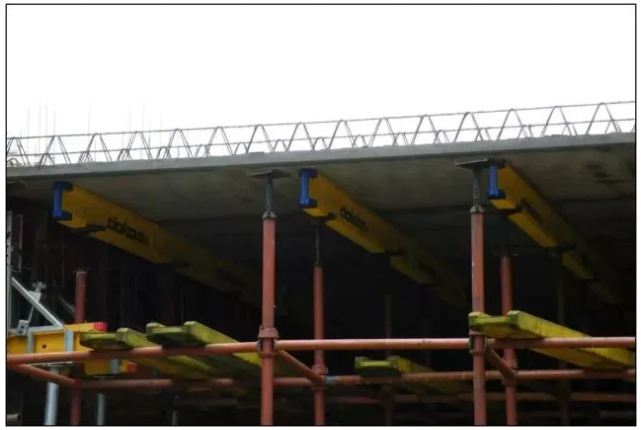 楼板支撑安装应按设计图纸要求进行布置,与框架梁施工穿插进行,尽可能减少施工工期。