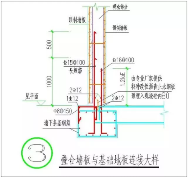 基础底板施工完毕,墙板吊装前应对基础预留的墙体竖向钢筋进行检查和调整。