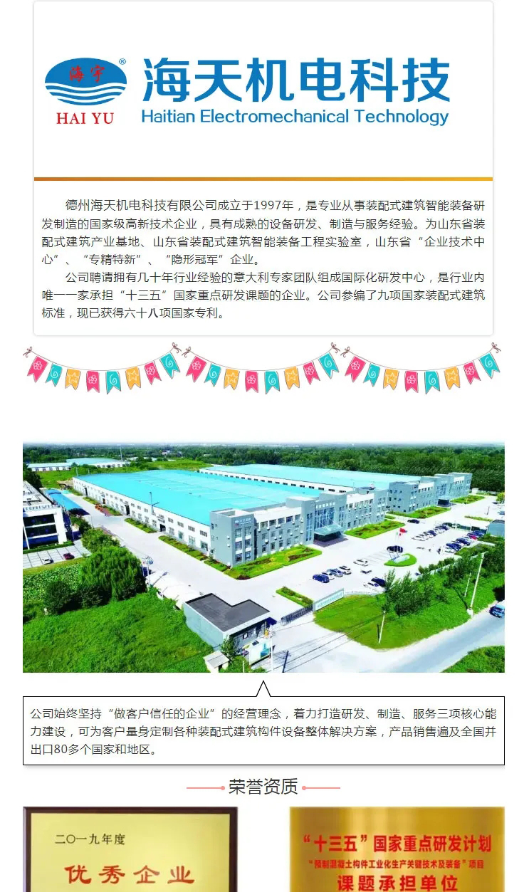德州海天机电深耕装配式建筑设备领域二十余年,积累了丰富的设备研发制造与服务经验,在全国各地拥有多个成熟案例,欢迎前去考察指导。