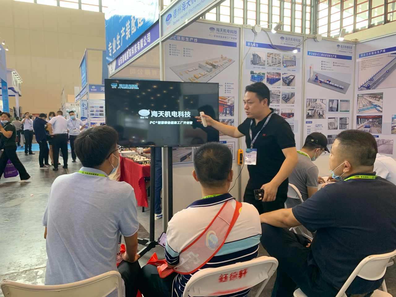 此次展会,海天机电科技共展出PC、轻质墙板、预应力、模具模台四大类共10余种产品。