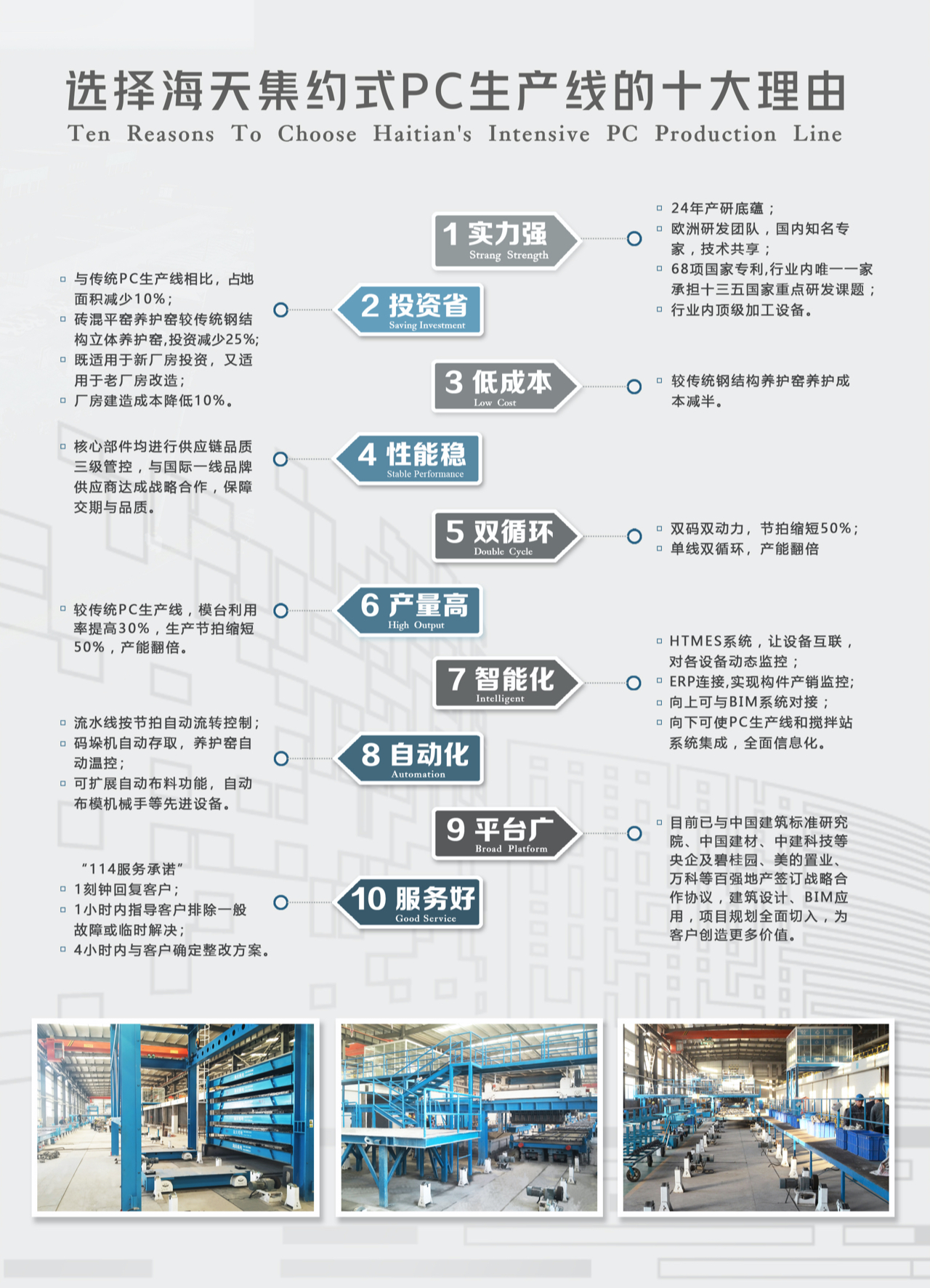 海天机电科技,20余年深耕装配式建筑生产设备领域,积累了深厚的技术底蕴和生产、安装经验。随着互联网+和5G时代的来临,海天机电科技进一步优化战略方向,以“PC+智慧装备超级工厂开创者”为指引,在装配式建筑领域走的更远!