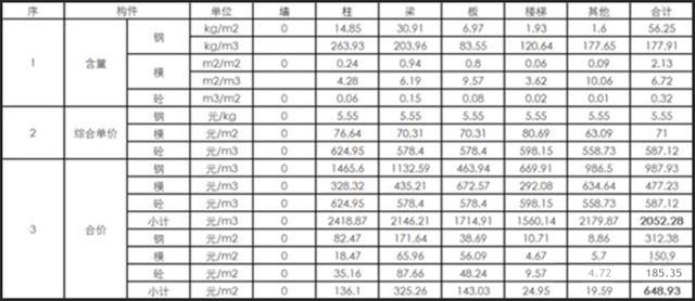 现浇结构的构件价格统计(含税)