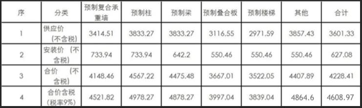 预制构件价格的市场调查