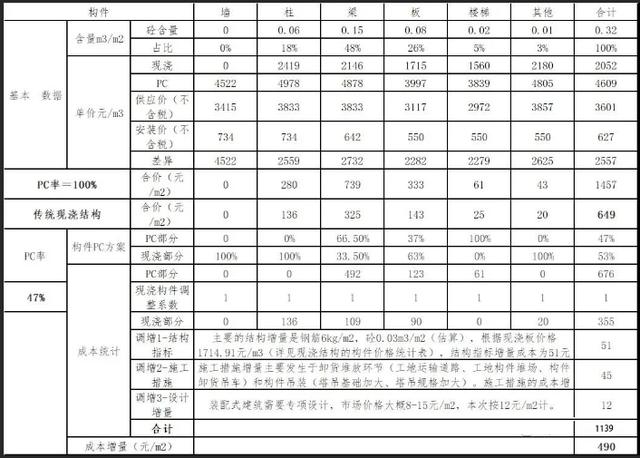 备注:主体成本增量主要包括构件价差、结构指标增量、施工措施增量、设计费增量等。结构指标增量、施工措施增量和设计费增量为估算。