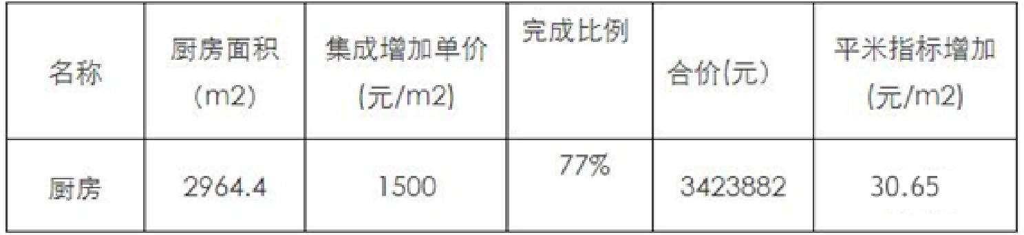 (2)集成厨房集成吊顶+墙面胶贴瓷砖, 完成比例77%,得分4分;