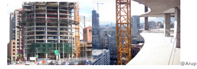 由于上述原因,国外住宅、办公等建筑也较多采用平板预应力结构,如我们设计的美国高烈度区旧金山无限双塔,42层,高140m。