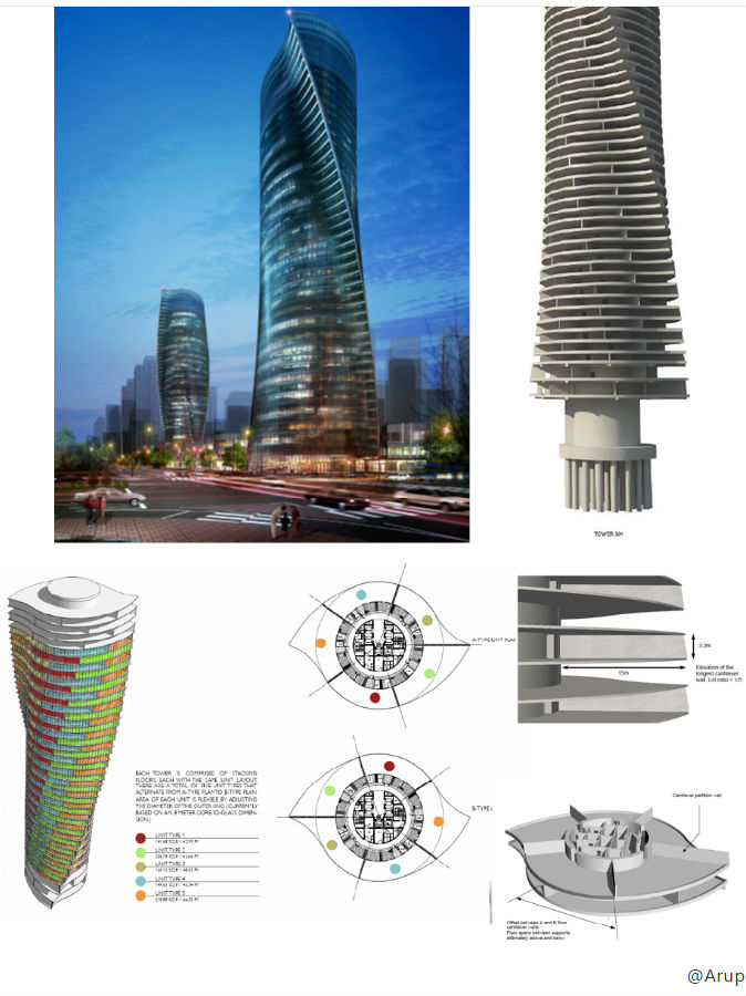 最、具挑战的项目是韩国Songdo Block D24,高度160m,50层,抗侧力体系采用核心筒单重抗侧力体系,水平承重体系采用预应力“错列”式悬挑墙+后张预应力楼板。