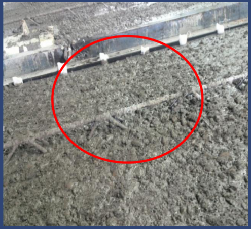 3.3.2 拉毛过晚,会造成拉毛深度不够,拉毛刀口无法深入混凝土表层。(PC固定模台生产线)
