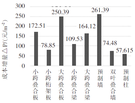 2.墙体构件中,双叶叠合墙造价增量较小,预制构件性价比优秀,使用它作为预制构件时可以在满足装配率的情况下使成本造价较低,具有很高的效益。