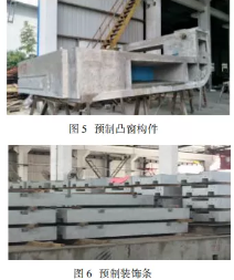 根据结构布置,标准层每层转角凸窗由于体积过大,采用普通混凝土会出现构件自重过大,导致运输和吊装困难。因此,在本工程4#钢结构建筑中转角凸窗(见图5)及其他楼的外饰面竖向装饰条(见图6)采用轻骨料外挂墙板,构件种类共27种。