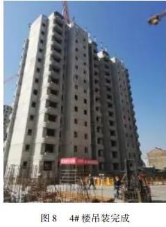 目前本工程主体结构已完工,外墙挂板已安装完成(见图8),研发的外墙挂板整体技术在实际工程中应用效果良好。
