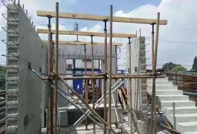 4、墙板临时支撑和模板支撑形式、数量、预埋件和安装检查。