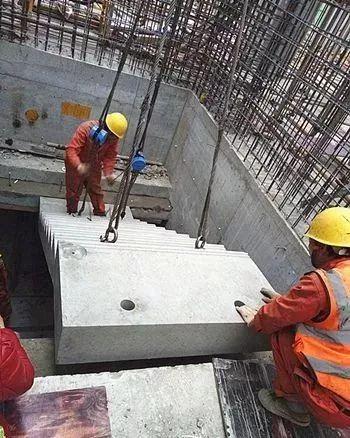 4、楼梯临时支撑形式、数量、间距、预埋件和安装检查。