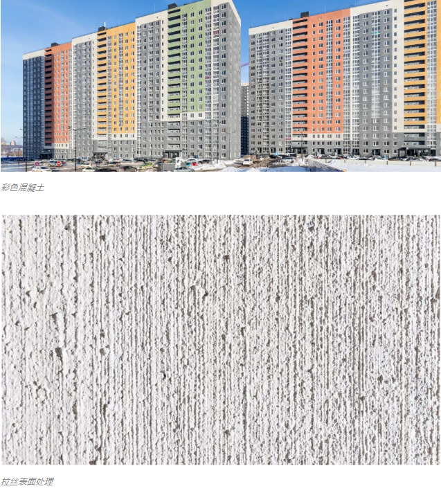 三明治墙板的外层可以制作出丰富多彩的外观效果来。例如,浮露骨料、熟料、酸处理、彩色混凝土、图形混凝土等。