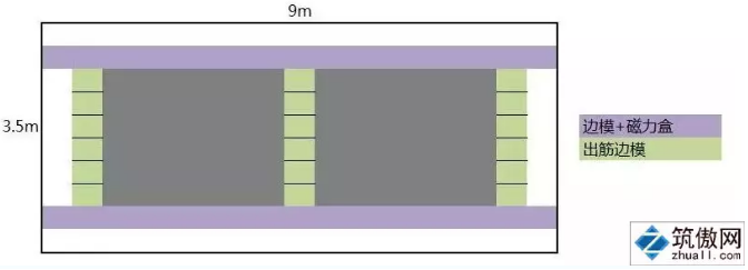 方案①:桁架叠合板在流水线上生产需使用边模、磁力盒和出筋边模,减少构件规格可提高边模利用率,如图2所示。