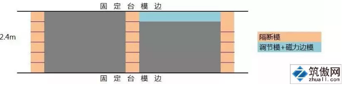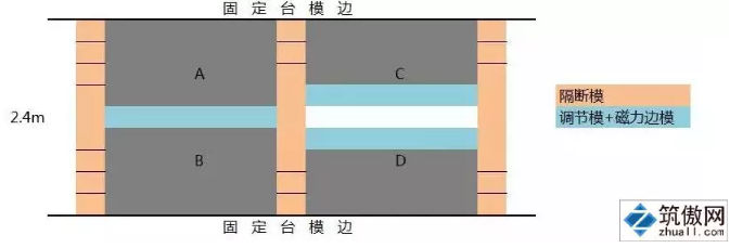 方案②:若采用长线法生产则需使用隔断模、调节模和磁力边模,固定台模边可充当边模,2.4m标准构件和非标构件的摆放方式如图3所示。