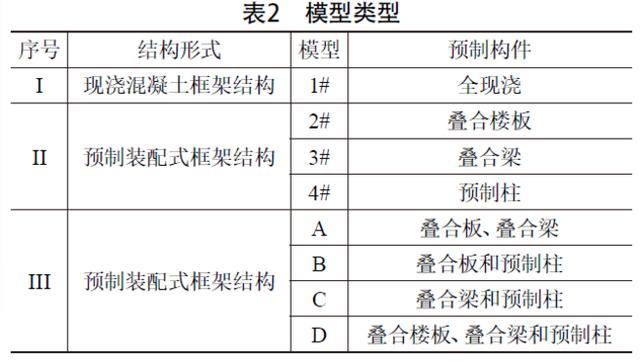 I类模型采用现浇式钢筋混凝土框架结构设计方案,II,III类模型采用预制装配式钢筋混凝土框架结构设计方案,平面布置图见图1。