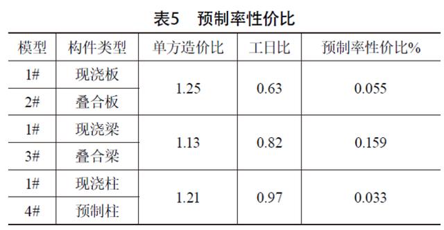 其意义为预制构件每增加1元成本所能提高的预制率,预制率性价比越高,说明该构件对预制率的提高越经济。以上各模型预制率性价比统计如表5。