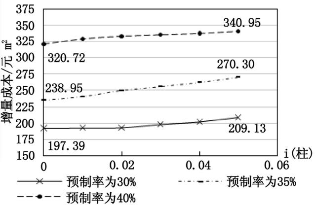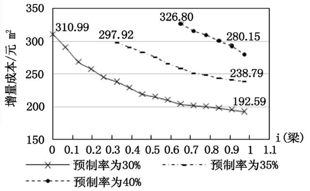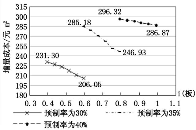 通过增量成本的分析发现当采用多个预制构件的组合方案时,考虑到接头连接,施工工序等影响,装配式建筑的成本并非仅由单个构件造价决定,而是随着组合方案及预制构件比例的变化呈规律性变化。