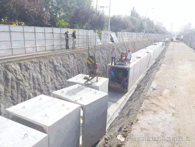 推动地下综合管廊装配化,是近年来兴起的一项重大变革。其原理是将管廊构配件在预制厂预制后运到施工现场通过拼装形成一个整体的施工方式。与常规的现浇相比,综合管廊采用预制装配式技术,施工方便快捷可以有效的缩短工期,减少人工成本,提高构件的浇筑质量,减少了对周边环境的影响,实现“绿色施工”。