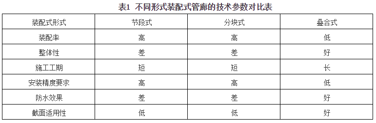 目前我国常见的装配式管廊形式均为钢筋混凝土结构。装配式管廊按其施工方法和构件形式可分为全预制装配式管廊和半预制装配式管廊两种形式。全预制装配式管廊按照构件拆分的形式又可分为节段装配式和分块(上下分块)装配式两种。而半预制装配式管廊工程中常见形式的主要为预制叠合装配式。