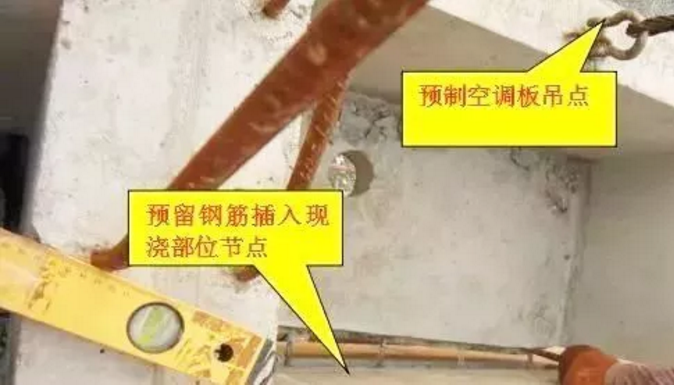 3 预制空调板和阳台板的吊装时吊点位置和数量必须转化图一致。