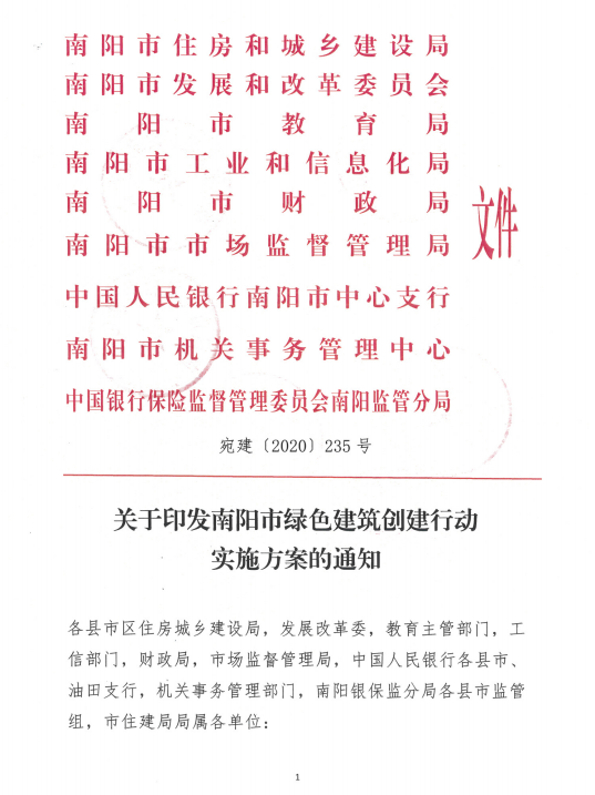 绿色建筑是指在全寿命期内节约资源、保护环境、减少污染,为人们提供健康、适用、高效的使用空间,最/大限度实现人与自然和谐共生的高质量建筑。为贯彻落实住房和城乡建设部等七部门《绿色建筑创建行动方案》(建标〔202O)65号)和河南省住房和城乡建设厅等九部门《河南省绿色建筑创建行动实施方案》要求,切实转变住房城乡建设发展模式和建筑业发展方式,加快推进绿色建筑发展,满足人民日益增长的美好生活需要,结合南阳实际,制定本方案。