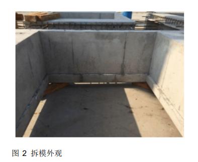 3. 混凝土异型构件在拆模后,如图 2所示,侧面容易出现无规则黑线或色斑,严重影响外观质量。