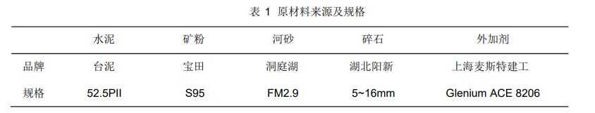 原混凝土选用的原材料的来源及规格如表1所示。