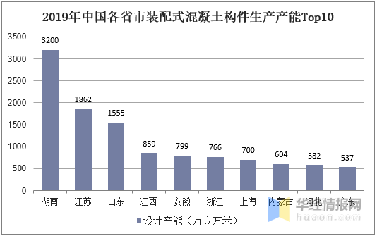 2019年中国各省市装配式混凝土构件生产产能Top.10