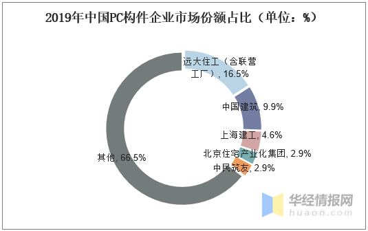 市场份额方面,远大住工(含联营工厂)是全国PC构件生产市场的最.大参与者,2019年市场份额占比达到16.5%。其他主要参与者有中国建筑、上海建工、北京住宅产业化集团、中民筑友等,其市场份额分别占比16.5%、9.9%、4.6%、2.9%、2.9%,其他企业市场份额占比66.5%。