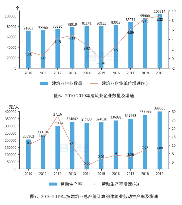 4.全国建筑业企业数量及建筑业劳动生产率情况