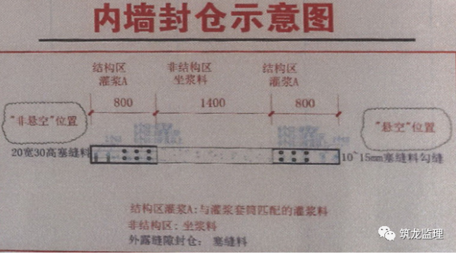 灌浆要有专项质量保证措施、全过程要有质量监控,48小时内温度不得低于10℃,有施工质量检查记录,且要密实饱满,灌浆料要留置标养试块强度报告及评定记录。每工作班应制作一组且每层不应少于3组40mmx40mmx160mm