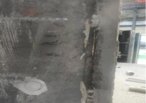 原因分析:拆模前没有对构件进行强度检测,因构件强度不足导致崩角发生。