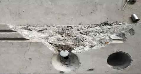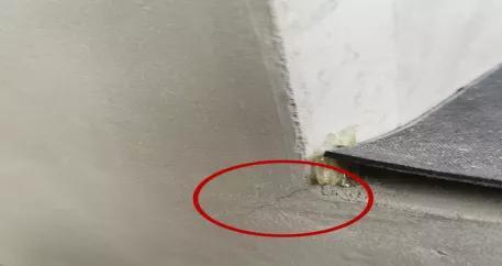 原因分析:吊钉安装前未对胶波进行检查,胶波内混凝土残渣未清理。