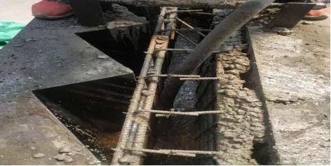 ②对凿除的部位用毛刷或气枪清理,并用水冲洗干净,充分湿润且不得有积水现象;