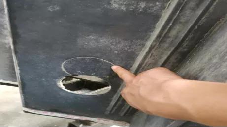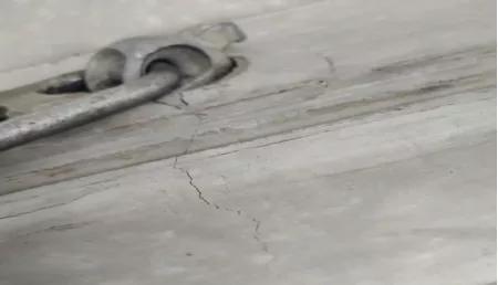 ③对于吊钉歪斜的,可先用吊扣进行检验,扣上吊扣,将吊扣旋转360度,在旋转受阻的地方,用电钻顺着胶波的弧度进行细细凿剔,直至吊扣能旋转360度即可。