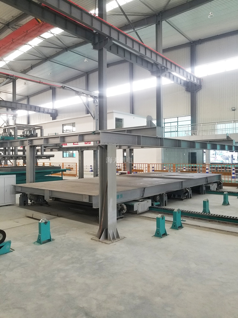 模台下面装有翅片式加热管,加热采用蒸汽加热方式,缩短生产周期,提高生产效率;