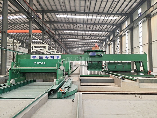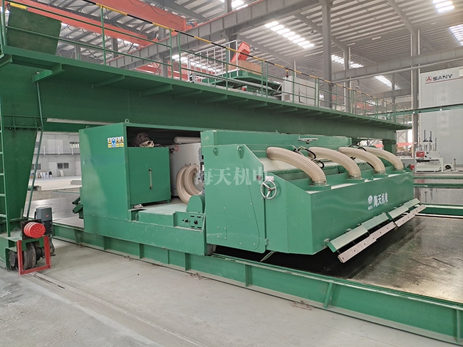 主要设备组成:布料机送料机、振动机、清扫除尘一体机、张拉设备、覆膜拉毛一体机、模台。