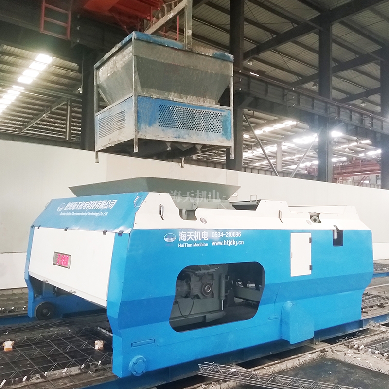 主要设备组成:布料机、送料机、振动机、清扫除尘一体机、张拉设备、覆膜拉毛一体机、模台。