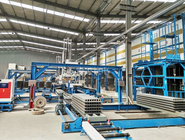 主要设备组成:包括物料输送返回系统、主机成型系统、中央控制系统、模板输送系统、墙板码垛系统、墙板切割系统、成品翻转打包系统、模板定位系统、蒸养系统等。