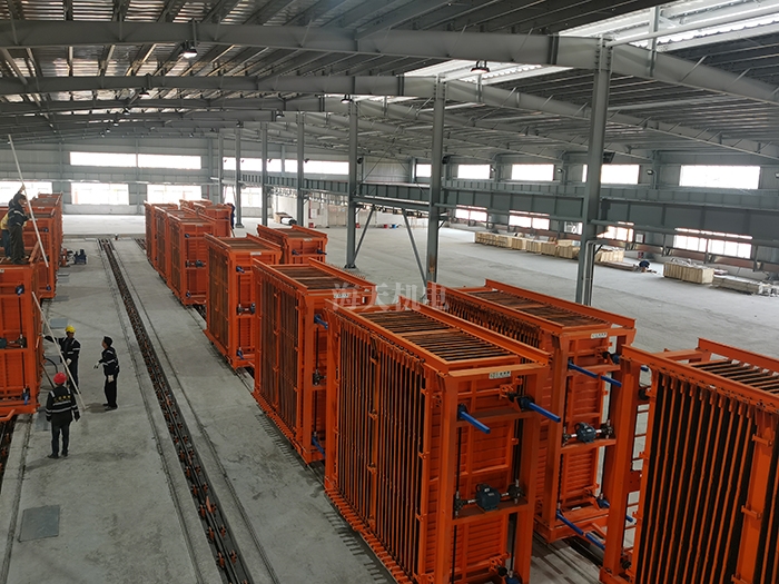 主要设备组成:主要包括原料输送系统、模车、注浆系统、养护系统、模板分离系统、养护系统。