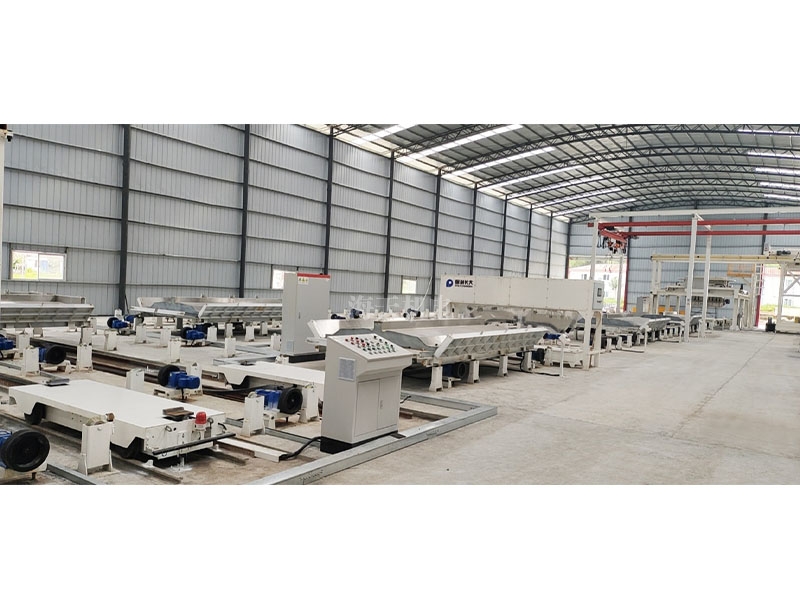 其主要功能区域包含布料成型区、温控蒸养区、拆模区、自动翻转区、模具回流区、机械人码垛区、自动打包区、成品存放区、模台预处理区等。